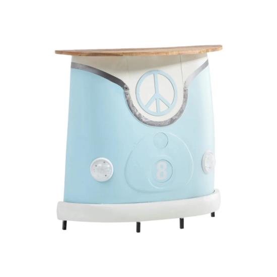 Představujeme barový pult Cabo, ideální vybavení pro každou moderní jídelnu či domácí bar. Tento atraktivní kus nábytku z modře lakovaného kovu s rozměry 103×32×100 cm dodá vašemu prostoru šmrnc a praktičnost, ať už servírujete drinky pro přátele nebo si užíváte ranní kávu.