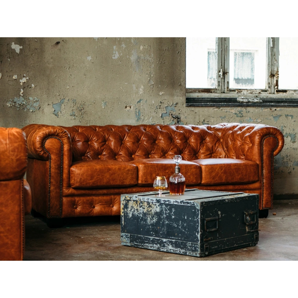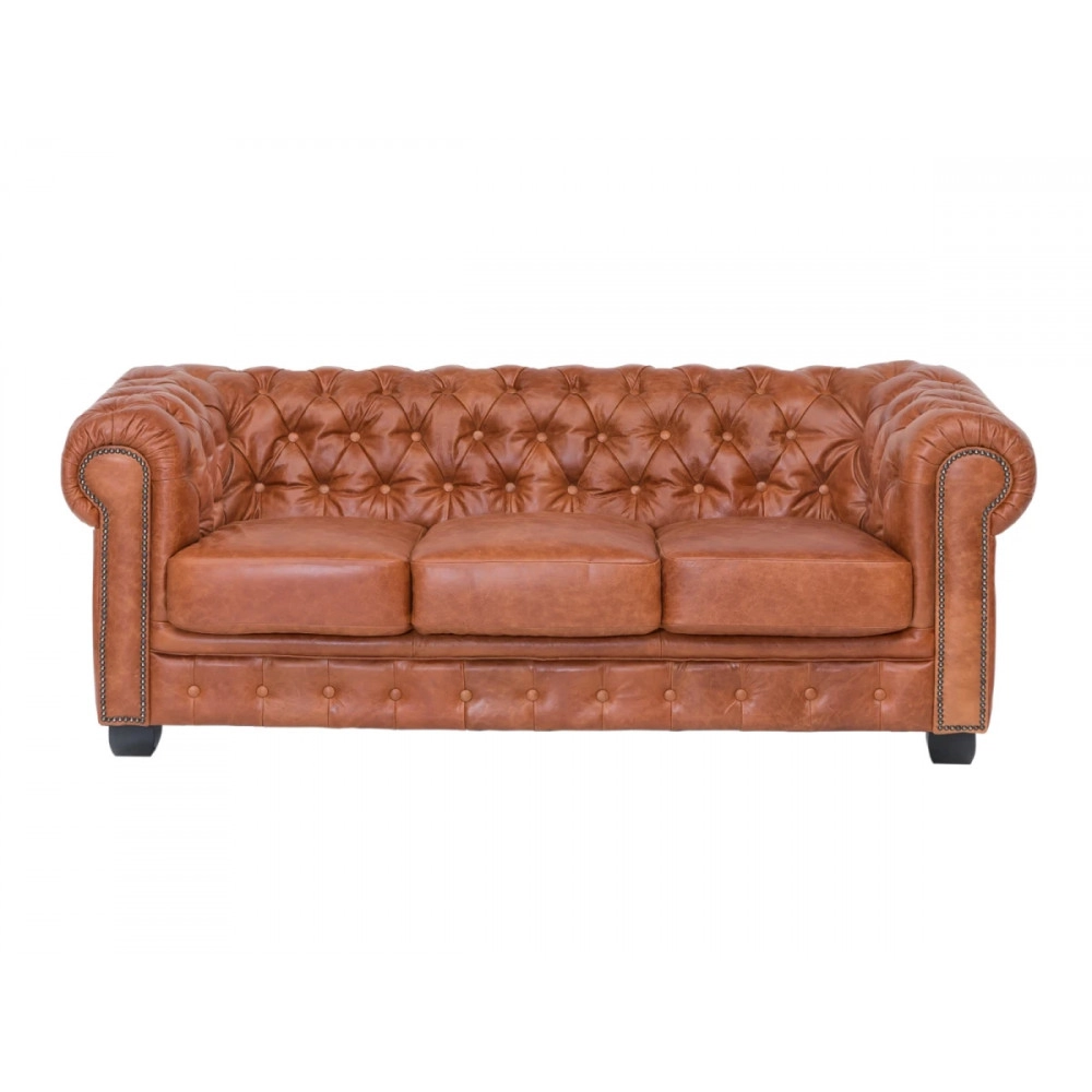 Chesterfield 3místná pohovka z pravé kůže vintage světle hnědá