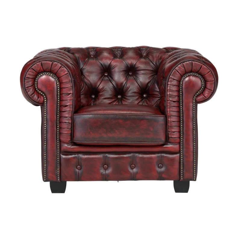 Objevte luxus a pohodlí s naším Chesterfield křeslem z pravé červené kůže, které je nejen ikonickým doplňkem každého interiéru, ale také nabízí neopakovatelný komfort díky svým rozměrům 112×98×79 cm. Toto klasicky elegantní křeslo poskytuje dokonalou oporu a stylový design, který oživí jakýkoliv prostor.