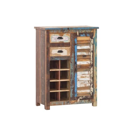 Masivní komoda Wakefield, vyrobená z recyklovaného dřeva, přináší do vašeho obývacího pokoje jedinečný šarm s nádechem barevnosti. Lakovaný povrch dodává této vícebarevné komodě rozměrů 77×42×108 cm nejen ochranu, ale i lesklý, atraktivní vzhled.