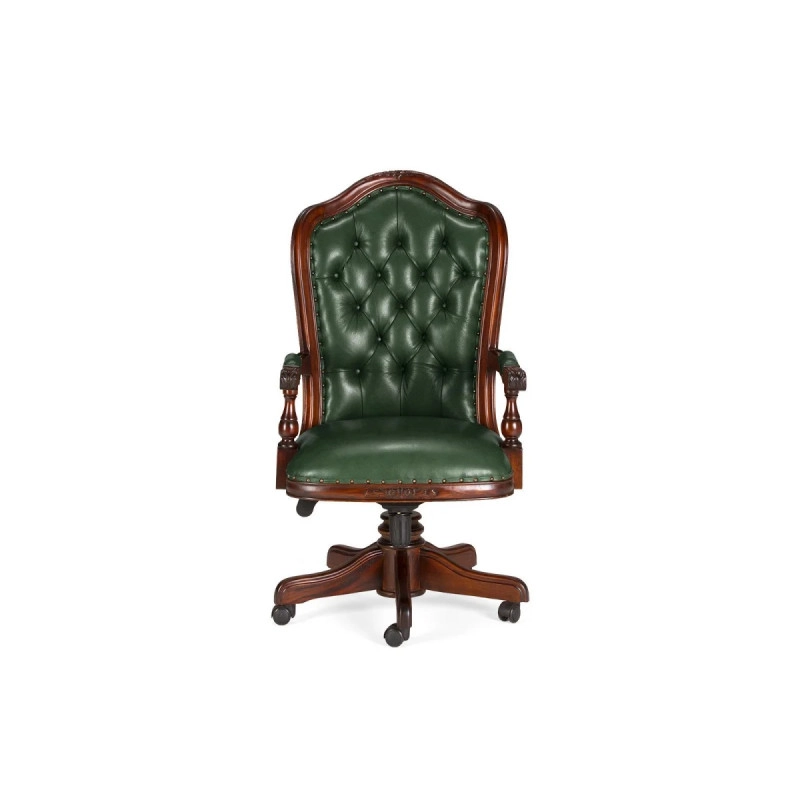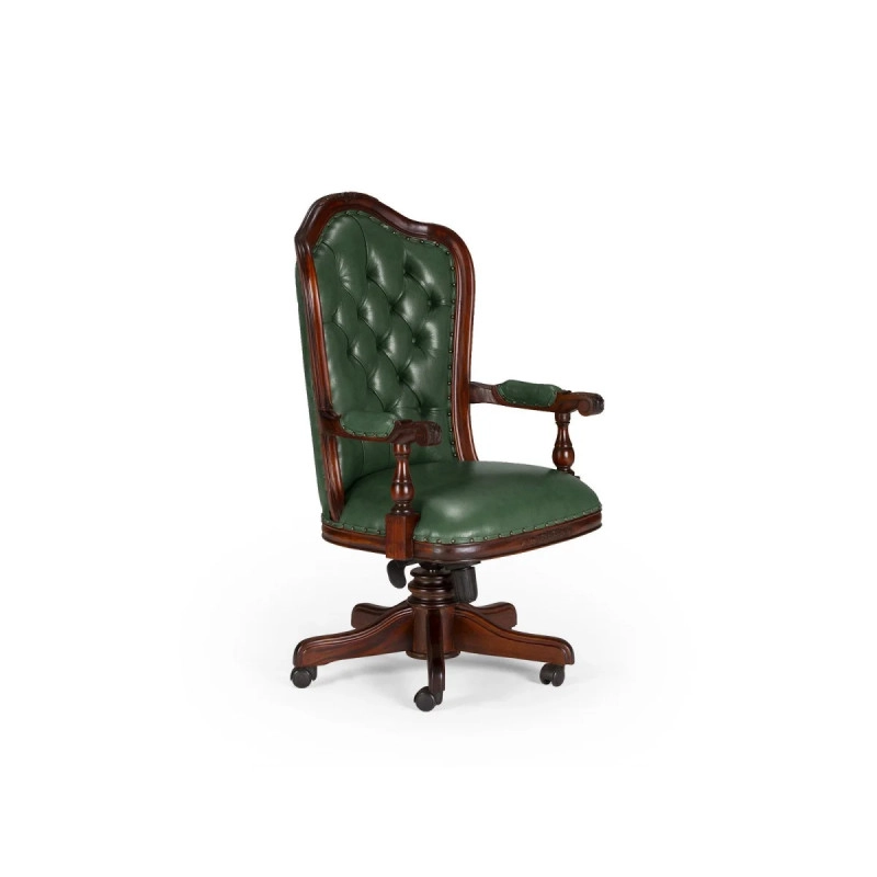 Objevte luxus a pohodlí s kancelářským křeslem Cambridge II, vyrobeným z prvotřídního lakovaného mahagonu v elegantní zelené barvě. Toto robustní křeslo, s rozměry 65 cm×57 cm×119 cm, dodá vaší pracovní zóně nádech noblesy a komfortu, který oceníte při každodenním používání.