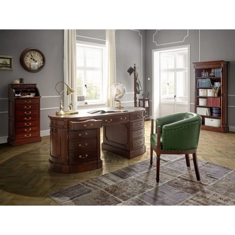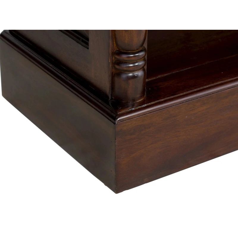 Objednejte si do svého obývacího pokoje tuto elegantní knihovnu Cambridge II, vyrobenou z prvotřídního mahagonového dřeva s luxusním lakovaným hnědým povrchem. Její rozměry 85×36×120 cm poskytují dostatek prostoru pro vaše knihy a dekorace, zatímco klasický design dodá vašemu interiéru nádech tradiční elegance.