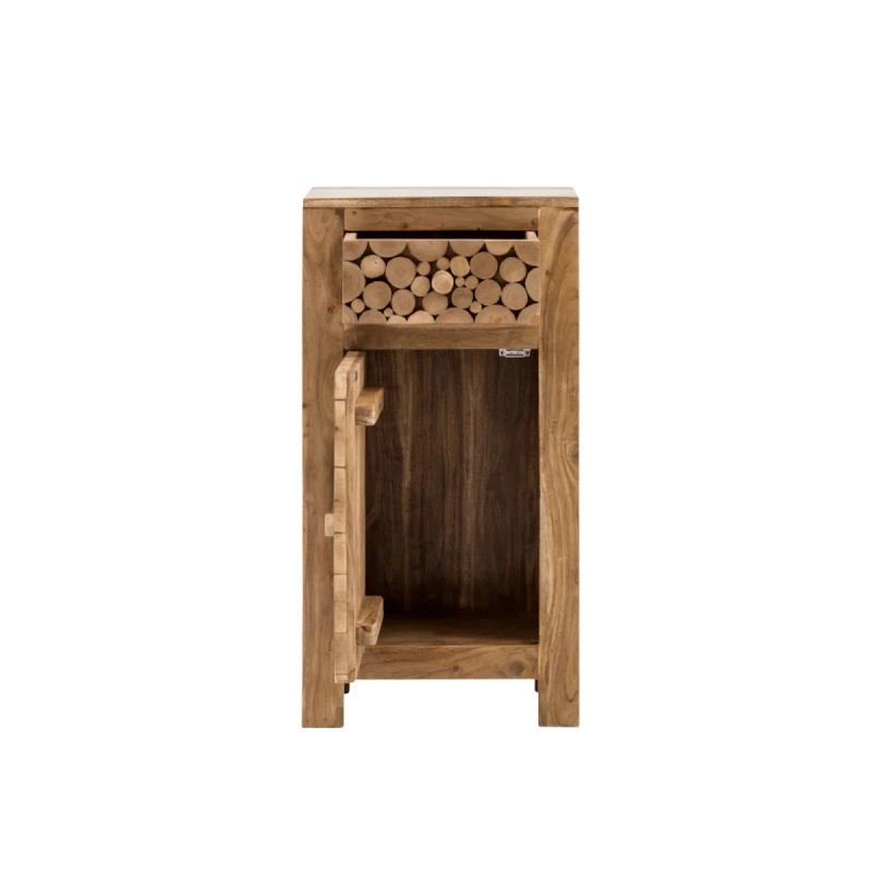 Vyberte si Katha jako středobod vaší koupelny, který nejenže splní funkční potřeby, ale také se stane estetickým prvkem, na který budete hrdí. Její přírodní akácie vytváří harmonii s ostatními dřevěnými prvky v interiéru, zatímco lakovaný povrch usnadňuje údržbu a zaručuje dlouhou životnost. Při každém pohledu na tuto skříňku se budete cítit obklopeni přírodou a klidným prostředím. Neotálejte a přetvořte svoji koupelnu na místo, kde se budete rádi zastavovat a relaxovat. Objednejte si masivní koupelnovou skříňku Katha ještě dnes a užijte si harmonii, kterou přináší!