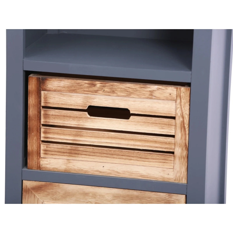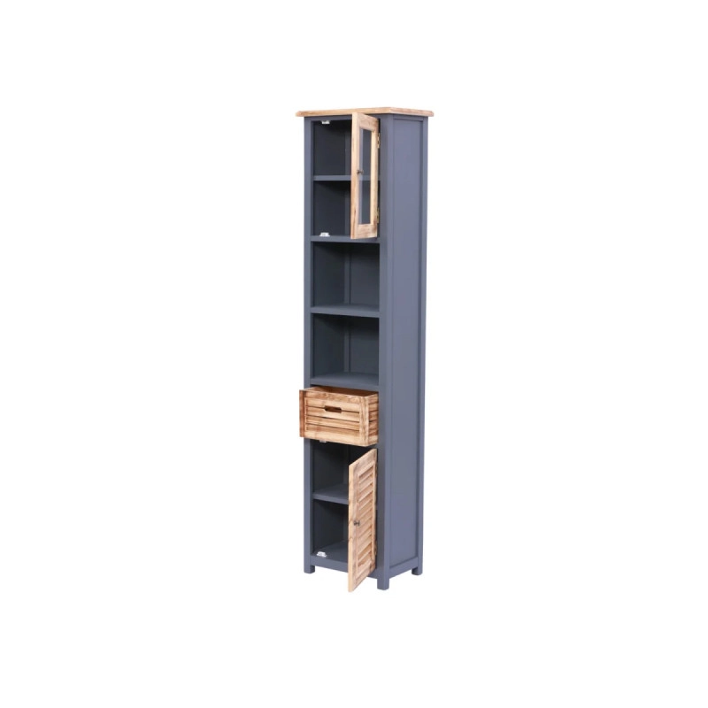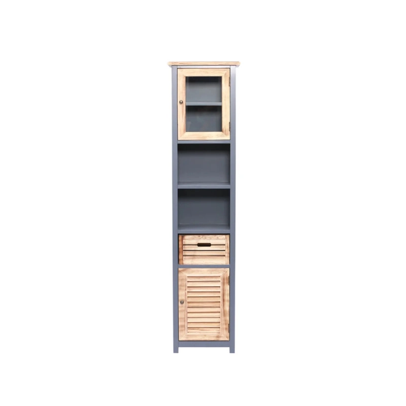 Vysoká koupelnová skříňka Kansas je dokonalým spojením funkčnosti a moderního designu, která promění vaši koupelnu v oázu klidu a elegance. Její šedá lakovaná povrchová úprava dodává šarm každému interiéru, zatímco jemné linie a příjemné proporce skříňky o rozměrech 45 cm na šířku, 30 cm na hloubku a 186 cm na výšku zajišťují, že se skvěle hodí i do menších prostor. Materiál Paulovnie v kombinaci s MDF zaručuje nejen vysokou kvalitu zpracování, ale i dlouhou životnost, čímž se stává spolehlivým partnerem pro vaše každodenní potřeby. Skříňka poskytuje dostatek úložného prostoru pro všechny vaše toaletní potřeby, kosmetiku a další nezbytnosti, přičemž si zachovává minimalistický vzhled, který je v souladu s aktuálními trendy v oblasti koupelnového designu.