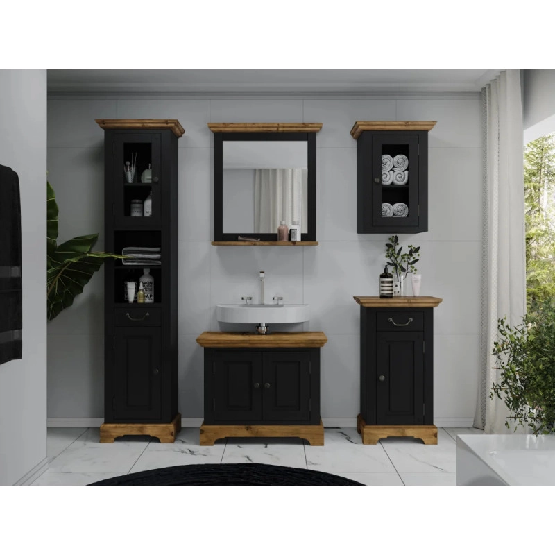 Hledáte zrcadlo, které nejenže promění vaši koupelnu, ale zároveň přinese nádech elegance a pevnosti? Masivní koupelnové zrcadlo Kenya z borovice a MDF je skvělou volbou, pokud toužíte po spojení přírodní krásy dřeva s moderním designem. Jeho obdélníkový tvar o rozměrech 73×15×78 cm nabízí dostatek prostoru pro pohodlné používání a zároveň působí jako výrazný designový prvek. Černý lakovaný povrch rámu dodává zrcadlu sofistikovaný charakter, který se dokonale snoubí s různými styly koupelen – od minimalistických po industriální nebo rustikální.