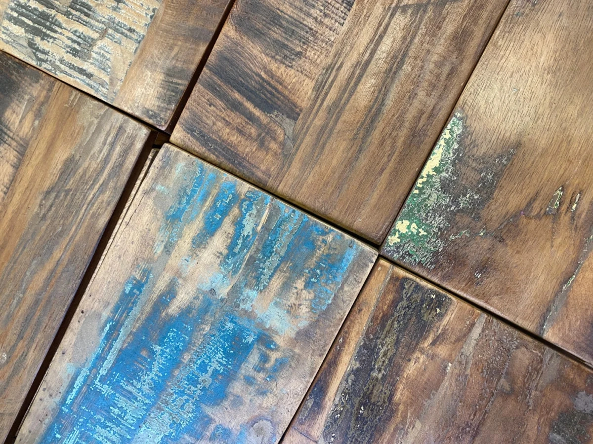 Přidejte šmrnc a praktičnost do svého obývacího pokoje s nástěnnou policí z recyklovaného dřeva, která je nejen ekologická, ale díky unikátnímu vícebarevnému lakovanému provedení se stane skvělým doplňkem každého interiéru. Tato kompaktní police (35 cm x 22 cm x 11 cm) nabízí perfektní místo pro uložení vašich knih, dekorací nebo klíčů.
