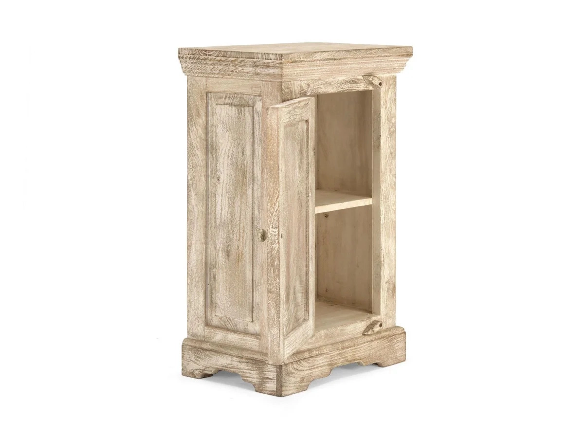 Masivní koupelnová spodní skříňka Patina, vyrobená z kvalitního mangového dřeva s lakovaným povrchem v přírodní barvě, svými rozměry 48×33×80 cm poskytuje dostatek úložného prostoru a dodá vaší koupelně teplý, přírodní vzhled.