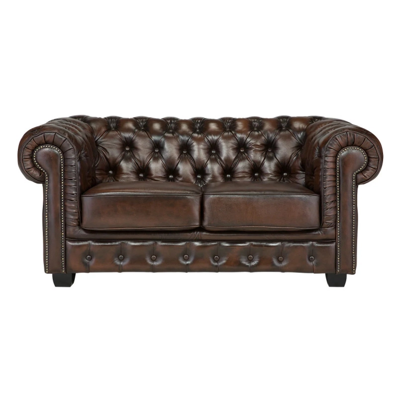 Objemte luxus a pohodlí s dvoumístnou pohovkou Chesterfield Big, vyrobenou z pravé hnědé kůže. Toto elegantní a nadčasové sezení, s rozměry 178 cm x 98 cm x 79 cm, dodá vašemu interiéru šmrnc i funkčnost, ideální pro relaxaci i reprezentaci.