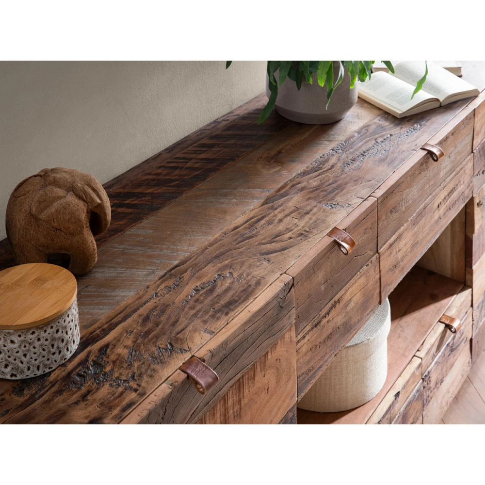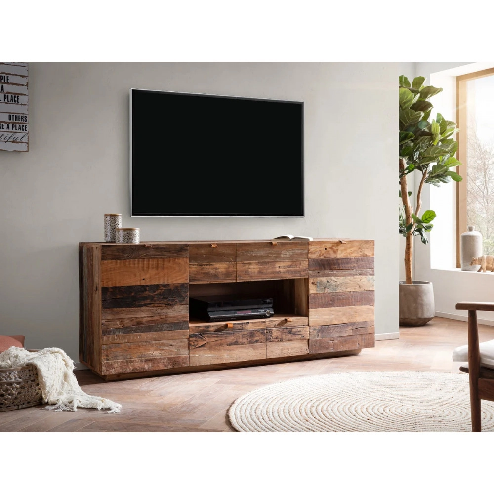Masivní příborník Oldwood z recyklovaného dřeva je dokonalým kouskem, který vdechne vašemu obývacímu pokoji jedinečný charakter a styl. S rozměry 180×40×75 cm nabízí dostatek úložného prostoru pro vaše oblíbené sklenice, porcelán a další poklady, které si zaslouží být na očích. Jeho přírodní barva a lakovaný povrch zdůrazňují krásu přirozené struktury dřeva, přičemž každá deska vypráví svůj vlastní příběh. Tento příborník se skvěle hodí do různých interiérových stylů, od rustikálního po moderní, a stává se tak nejen praktickým pomocníkem, ale i estetickým prvkem, který upoutá pozornost.
