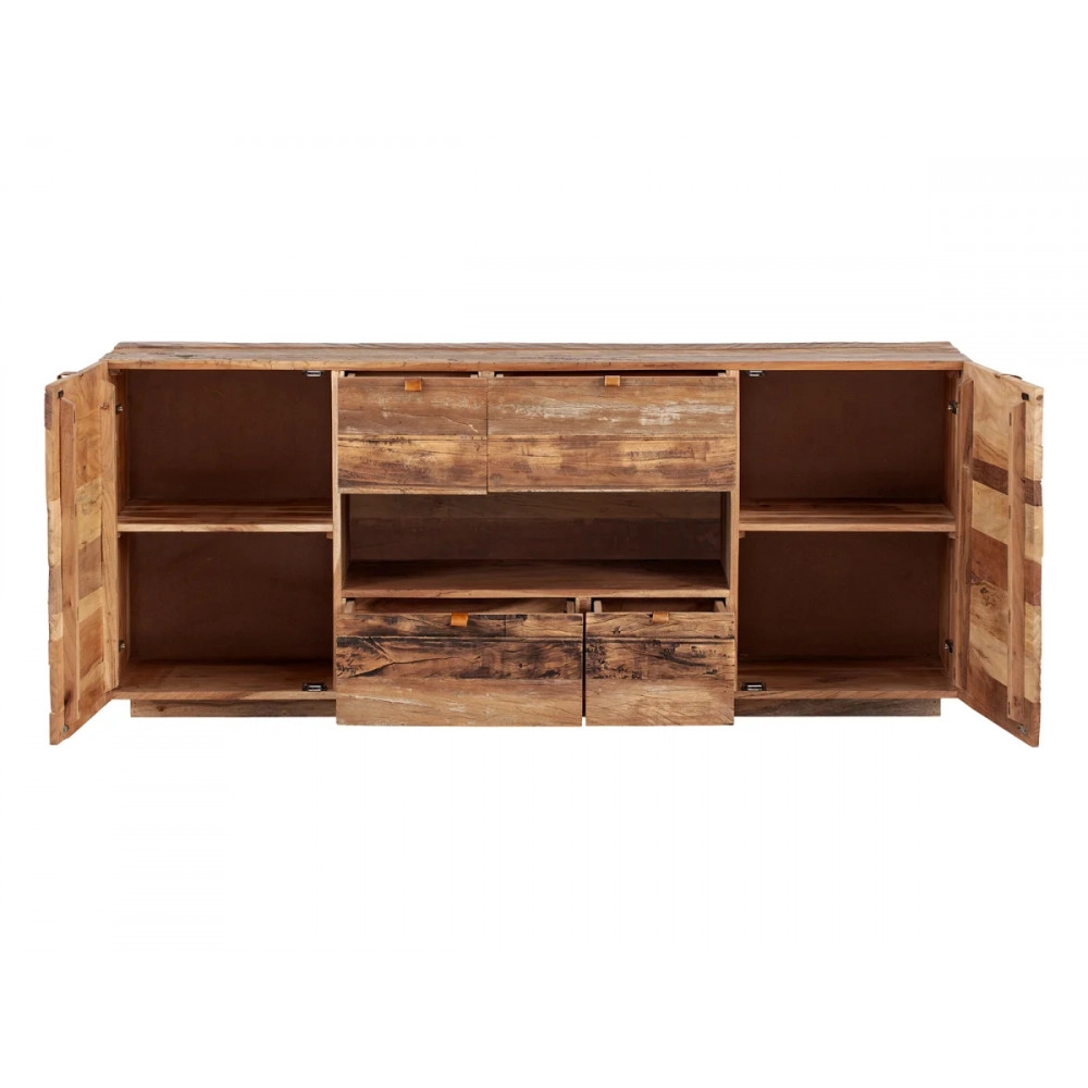 Vyrobený z recyklovaného starého dřeva, příborník Oldwood se pyšní nejen ekologickým původem materiálu, ale také vysokou kvalitou zpracování, která zaručuje dlouhou životnost a odolnost. Lakovaný povrch dodává dřevu lesk a chrání ho před každodenním opotřebením, což oceníte při běžném používání. Jeho elegantní tvar a minimalistické linie usnadňují kombinaci s dalšími kusy nábytku, čímž vytváří harmonický a útulný prostor. Přiveďte domů kousek, který je nejen funkční, ale i inspirativní, a proměňte svůj obývací pokoj v místo plné pohody a stylu. Nečekejte a objevte kouzlo příborníku Oldwood – váš domov si ho zaslouží.