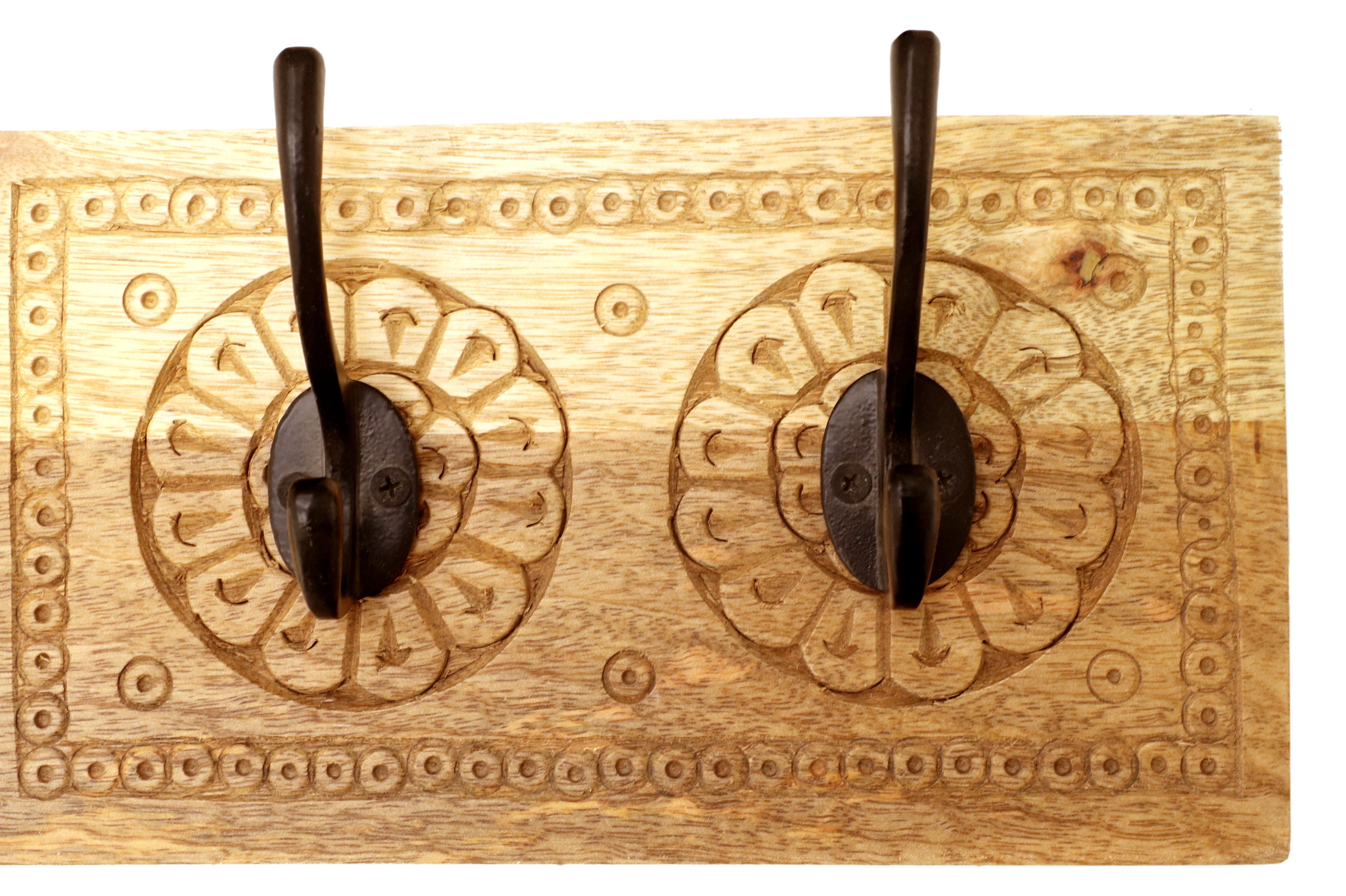 Věšák z masivu s 5 háčky je vyroben z indického manga. Věšáky na zed' z masivu, které máme skladem, si můžete prohlédnout v našem showroomu. Indický koloniální nábytek mango masiv.